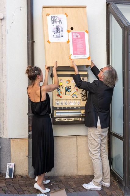 Seit seiner Installation an der Museumsfassade und seiner Enthüllung im Sommer 2022 sorgt der einstige Zigarettenautomat schon allein durch sein Äußeres für Entzücken: Sein nostalgisches, vom bekannten Berliner Künstler Jim Avignon bemaltes Gehäuse stammt ursprünglich aus den späten 1960er-Jahren und zieht mit seinem Retro-Charme die Blicke auf sich. Doch statt rauchender Glimmstängel gibt es hier rund um die Uhr und ganz ohne Barrieren regelmäßig wechselnde Special Edition-Schachteln in Form kleiner und origineller Unikate oder kreativer Überraschungen zu ziehen und vor allem zu entdecken – und zwar passend zu den aktuellen Ausstellungen des Hauses.